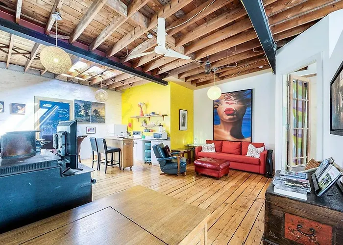 Unique Above Garage Loft酒店坐落在Dufferin Grove Park旁边.这家经济型的住所在全场提供免费无限网络. 该酒店还在现场有私人停车场.